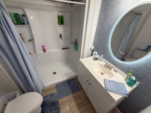 Fully Rebuilt Bathroom With New Shower, Toiley, Vanity And Electric Mirror