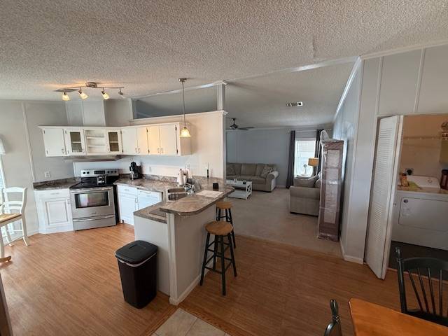 The fully enclosed front porch adds impressive extra living space, complete with air conditioning and real glass windows. It’s the perfect spot to enjoy morning coffee, entertain guests, or simply relax while taking in peaceful community views. Inside, the open kitchen features upgraded countertops, stainless steel appliances, and a raised bar area ideal for casual dining or conversation.