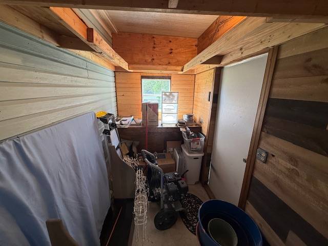 An additional bonus is the unique double storage shed, which has been enhanced with accent walls, transforming it into a versatile space that can be used beyond simple storage.