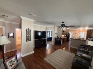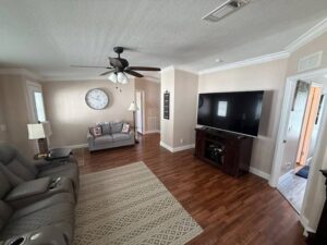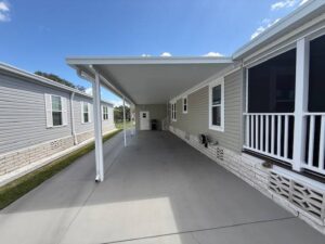 As you arrive, you’ll notice the oversized custom-built driveway and large carport, offering plenty of parking for both residents and guests. The home also features a fully built front porch with power, upgraded screens, and ceiling fans, creating a comfortable outdoor space perfect for relaxing or entertaining year-round.