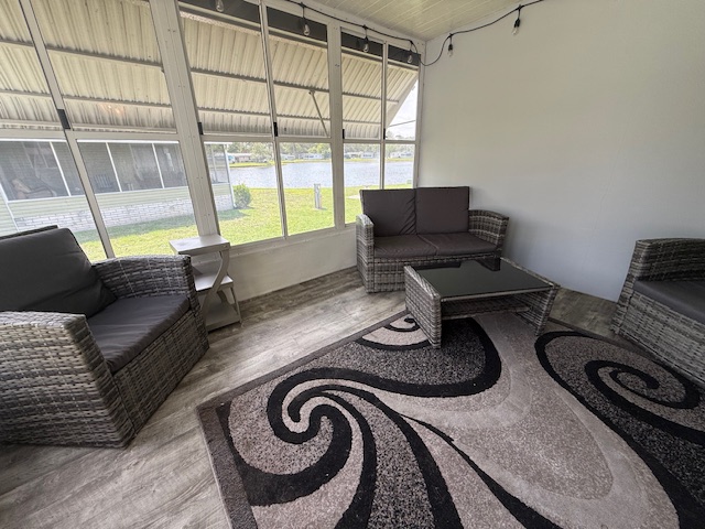 The full vinyl wrap provides a modern look on the outside as the full water view offers a peaceful lookout that is ripe for bird watching!