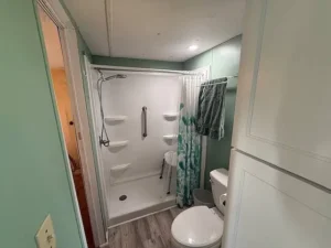 Updated bathroom replaced all fixtures, flooring, plumbing and walk-in shower.