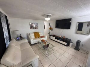 Step inside and you’ll immediately notice the thoughtful renovations throughout. The interior features tile flooring in every room, a fully updated kitchen with granite countertops, newer cabinets, and updated appliances. Both bathrooms have been refreshed, and major components like the roof and hot water heater have been replaced in recent years for added peace of mind. The home is being sold partially furnished, making move-in simple and convenient.