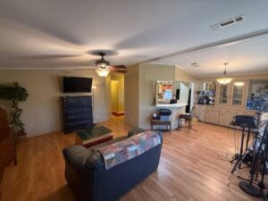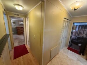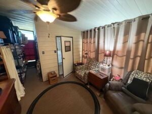 Inside, you will find an open and inviting floor plan that feels larger than expected. The main living areas feature tile and laminate flooring, while the bedrooms offer comfortable carpeted spaces. The home is smoke-free, pet-free, and partially furnished, making it easy to move right in. A highlight of the home is the enclosed 12’ x 12’ lanai with darkened vinyl thermal windows and its own separate A/C unit. This space works perfectly as a second living room, hobby area, or quiet retreat, bringing total living space to approximately 1,288 square feet.