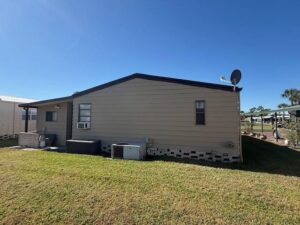 The kitchen and mechanical systems have seen extensive updates, giving peace of mind for years to come. Outside, the freshly painted aluminum siding, raised slab, and tie-downs reflect careful ownership. The yard is supported by its own irrigation well and sprinkler system, so maintaining the lawn is easy and cost-effective, with no city water bill for irrigation.