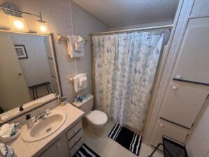 Inside, you’ll find a layout designed for both comfort and convenience. The primary bedroom includes an en-suite bathroom, while a private guestroom offers flexibility for visitors or hobbies. Central air conditioning remains under warranty, giving added peace of mind for future ownership. With laundry located inside the home and appliances already included, this property is ready for immediate enjoyment.