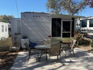 Inside, the home feels bright and welcoming. The kitchen has been updated with modern counters and comes fully equipped, while indoor laundry adds convenience you don’t always find at this price point. Step outside and you’ll appreciate the oversized parking area, private setting with no rear neighbors, and custom paver patio—perfect for enjoying Florida’s year-round sunshine.
